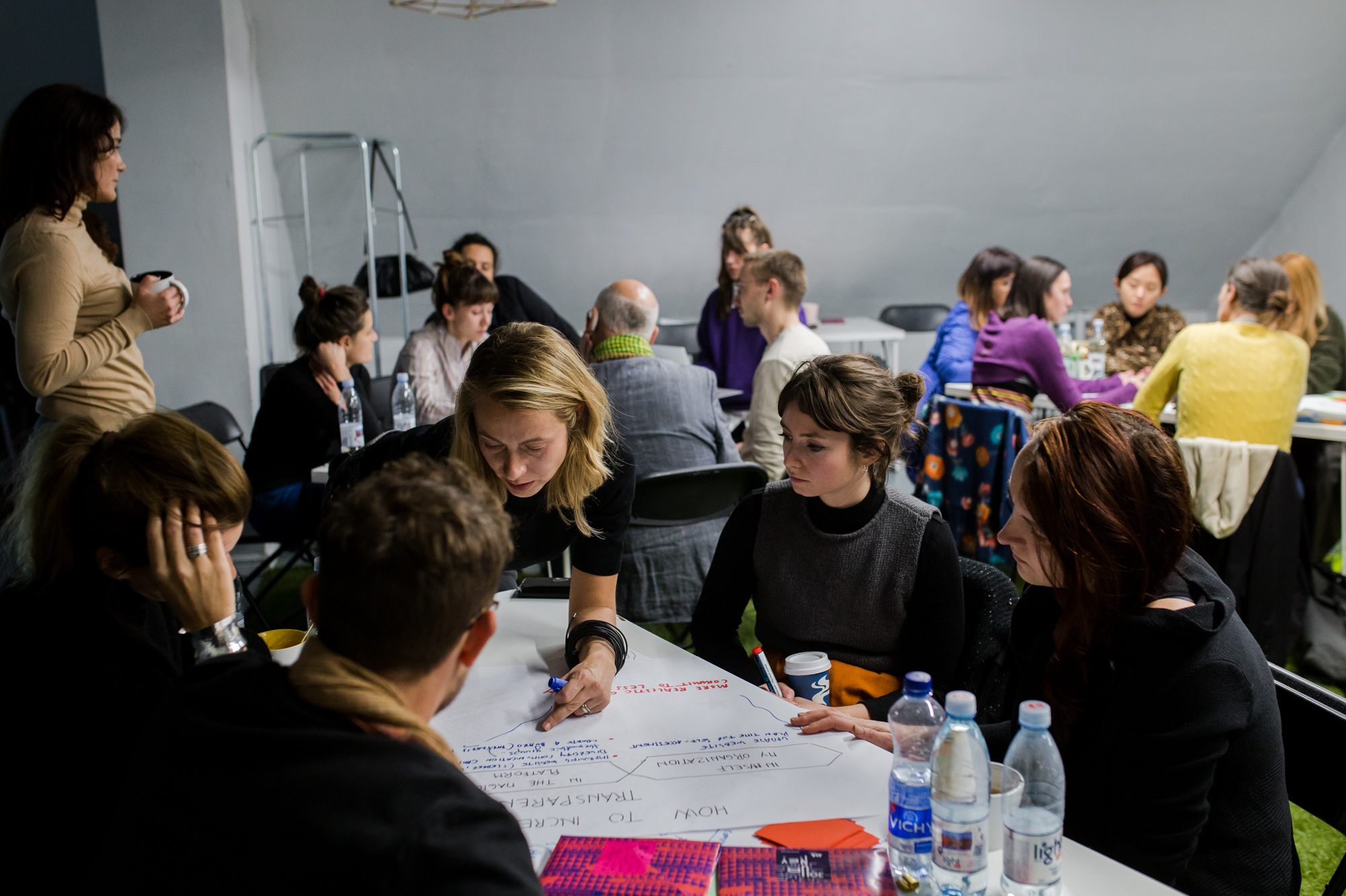 En clôture de cette semaine, l’exposition Magic Carpets Landed a été inaugurée à Kaunas vendredi 5 novembre 2021. Ouverte jusqu’au 23 janvier 2022, elle présente des oeuvres réalisées lors des résidences, et restitue les parcours et témoignages des communautés impliquées. L’agence 0101 y a présenté une carte géante de l’île de Nantes, à la fois oeuvre et témoin du travail mené à Trempo. Maxime Retailleau et Fabian Scholz ont également piloté un workshop / performance très apprécié, avec l’ensemble des curateurs·rices sur place.